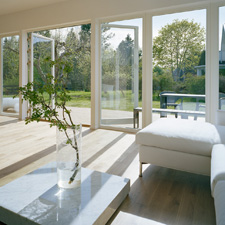 I varje rum finns minst två fönster vilket skapar ett vackert ljusspel och flöde med intressanta skuggor och rörelse i rummen under dagens lopp.