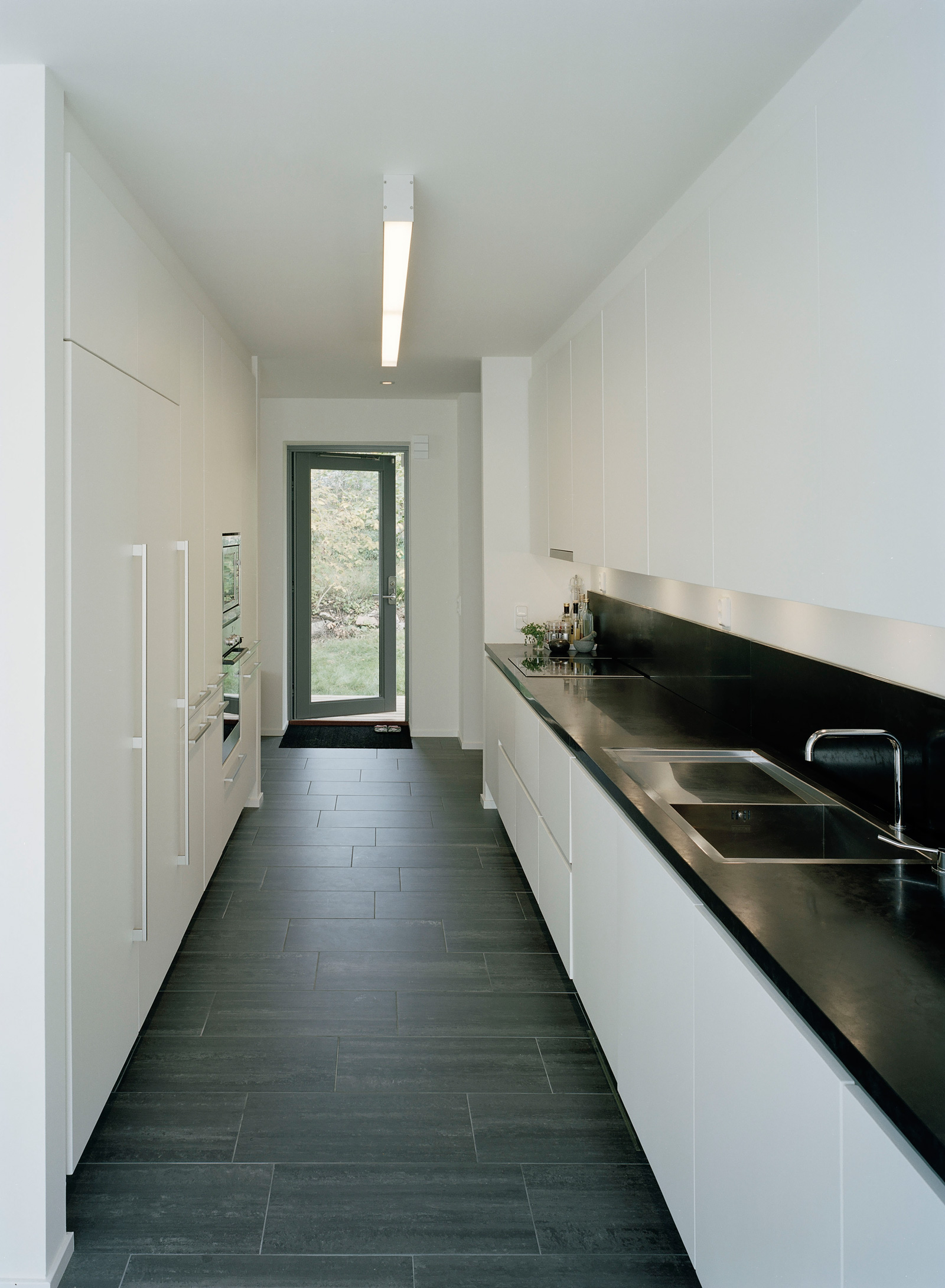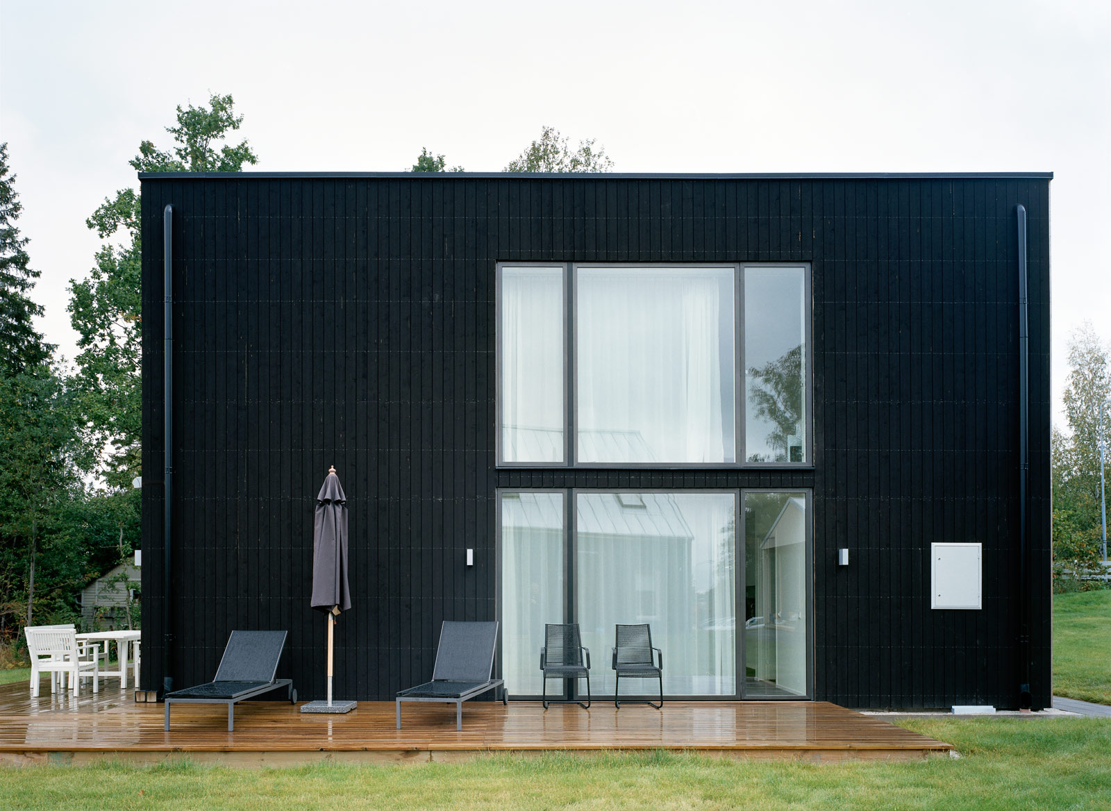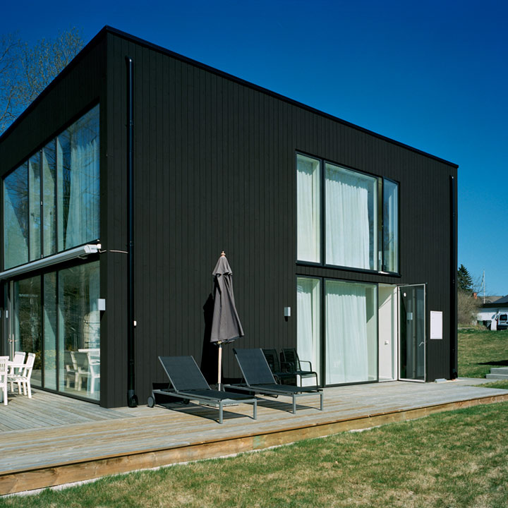 Ljust, öppet och lättplacerat kubformat hus.